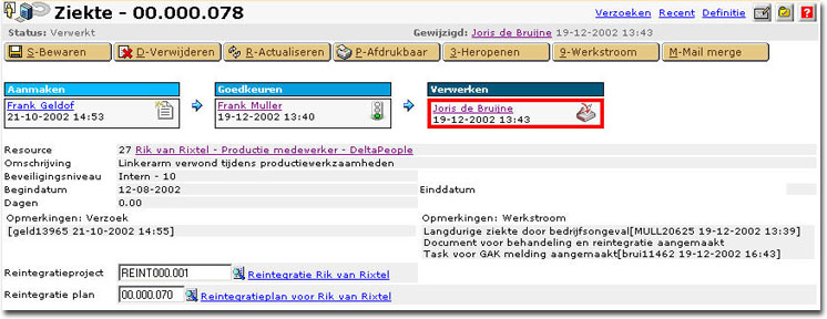 Zodra de medewerker een proces heeft opgezocht in het digitale handboek, kan met één druk op de knop het proces worden gestart waarna het proces in één werkstroom door uw organisatie stroomt. Op deze wijze is het voor de betrokken medewerker een natuurlijk proces om eerst het proces op te zoeken in het digitale handboek, waarna op een snelle en efficiënte wijze het proces in een werkstroom gestart wordt. In plaats van een papieren proceshandboek en papieren formulieren wordt nu alles direct vanaf het computerscherm gelezen en gestart.